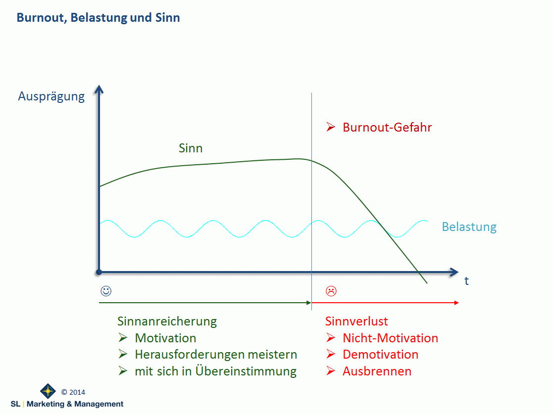 In der Arbeitspsychologie und der Ergonomie stand jahrzehntelang die Belastung des Menschen im Vordergrund. Zwar wurde die Forderung, Arbeit dürfe nicht schädigen, um die Erweiterung, Arbeit müsse auch den Raum für persönliche Weiterentwicklung bieten, ergänzt, aber ein wesentlicher Faktor für die Entstehung von Burnout und Ausbrennen wird hierbei nicht gesehen. Selbst wenn die Belastung gar nicht zunimmt, kann der Sinnverlust dazu führen, dass dem Ausbrennen Tür und Tor geöffnet ist.