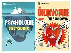 Wie stellt sich der Verlag dieser Herausforderung? Auf ganz und gar populäre Art und Weise, sie verlegen eine Sachcomicreihe: „Seriös, leicht verständlich und lebendig“ so sind die Einführungen in verschiedene wissenschaftliche Disziplinen, von denen ich mir eben die ÖKONOMIE & PSYCHOLOGIE genauer angeschaut habe. Doch zu den bibliografischen Angaben …