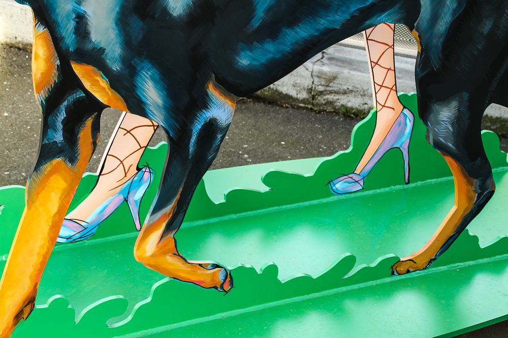 Kunst trifft Wirtschaft - Carolin Okons Frau mit Hund für Apolda auf dem Gelände der IW-Classic GmbH in Leipzig
