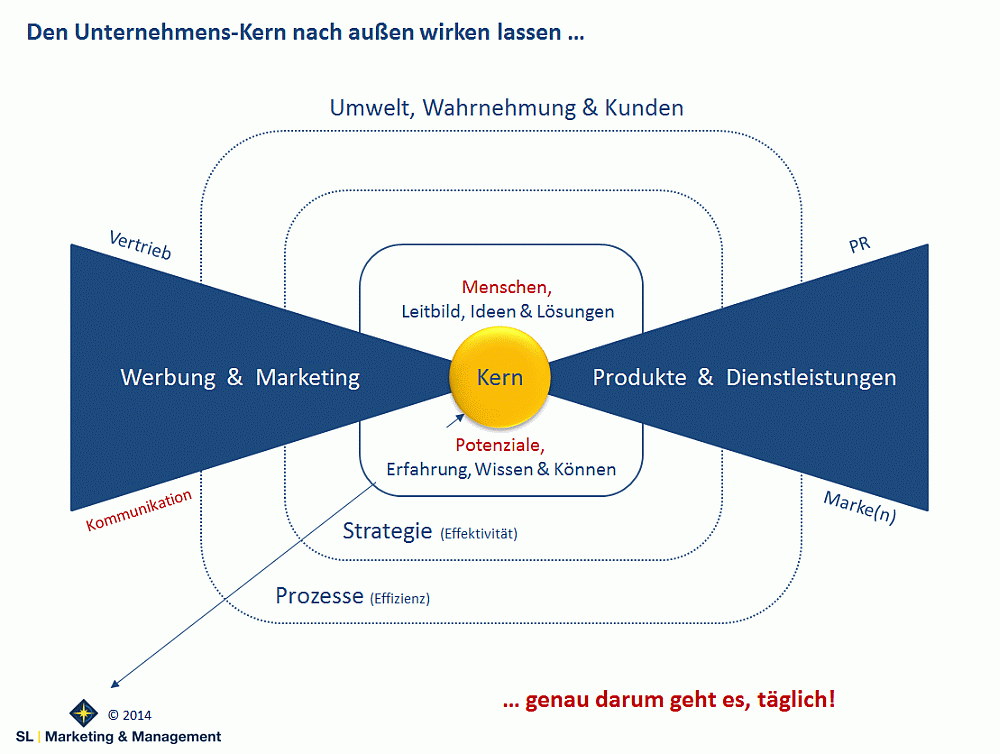 Ob diese Marketingexperten das wirklich hin bekommen, das steht auf einen völlig anderen Blatt. Meiner Erfahrung nach, machen wir uns Marketingberater und Unternehmen oder besser Unternehmer nicht ausreichend die Mühe, den wirklichen Unternehmenskern, das tatsächliche Alleinstellungsmerkmal, sauber herauszuarbeiten.