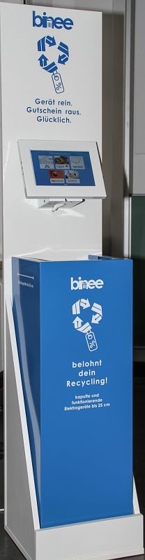 Das zweite Unternehmen in der Runde befasst sich mit der Lösung eines klassischen Umweltproblems. So ist es leider auch heute noch so, dass Elektroschrott zu wenig fachgerecht entsorgt oder rechtswidrig zum Beispiel in afrikanische Länder exportiert wird. Binee stellt eine intelligente Tonne oder besser Sammelbox auf, die den Menschen, der Elektroschrott bis zu einer bestimmten Maximalgröße in die Box wirft, mit einem Gutschein belohnt.