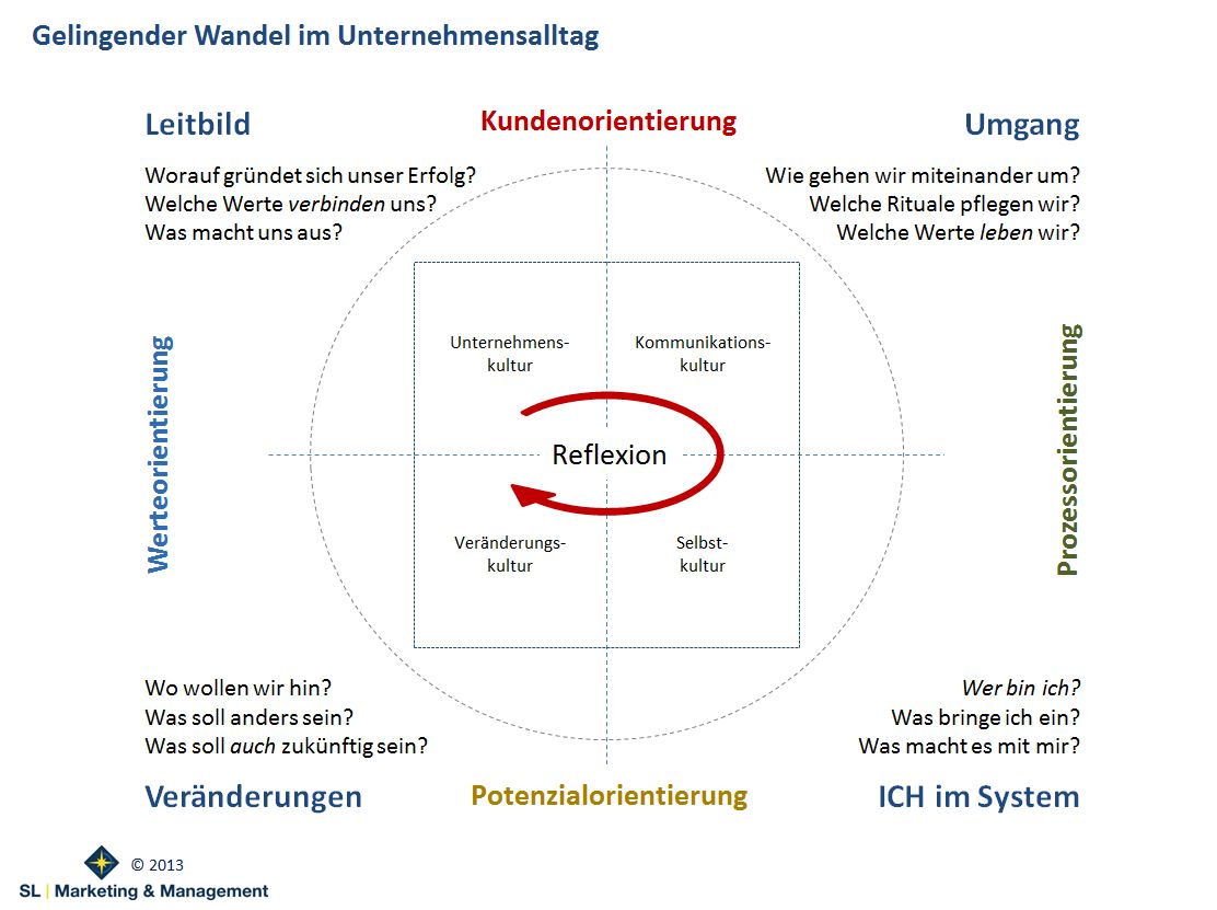 Wenn es einen sich immer wiederholenden Prozess in erfolgreichen Unternehmen gibt, dann den des ständigen Wandels. Dieser iterative Prozess kann und muss auch beeinflusst und gestaltet werden. Welche Faktoren spielen dabei eine Rolle? Mindestens gibt es zwei Faktoren. Auf der einen Seite den Menschen und auf der anderen Seite das, was man als das ihn umgebende System, eben das Unternehmen, sehen könnte. Kultur und diese immerfort geeignet zu reflektieren, spielt dabei eine sehr zentrale Rolle. Entscheidend für den dauerhaften Erfolg ist die Antwort auf die Frage: Woran orientieren, in einer sich wandelnden Welt?