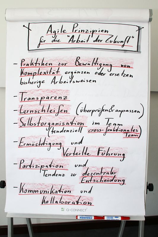Zum Schluss präsentierte Birgit Mallow ihre Sicht auf die agilen Prinzipien für die Arbeit der Zukunft. Mit ihrer Meinung, dass AGILITÄT in Leistungsprozessen auch Führung braucht, steht sie auf keinen Fall allein da. Birgt arbeitet im eigenen Beratungsunternehmen in München.