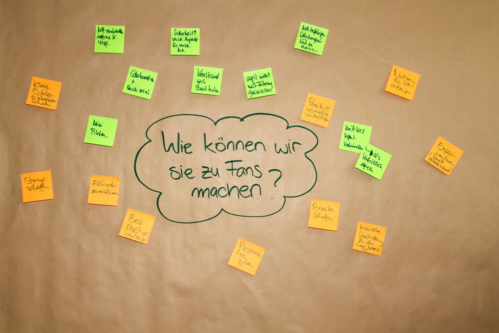Auch in diesem Jahr fesselt mich der zweite Workshop trotz Suppenkomas ganz besonders. Eines kann ich schon jetzt schreiben: Es war ein herrlicher Genuss und eine Freunde die Arbeitsweise von Birgit Mallow zu sehen, zu erleben und sie so auch gleich kennenzulernen. Tolle Kollegin in der Unternehmensberatung! Ganz ohne digitale Hilfsmittel nur mit Papier, Stiften, Flipcart, Moderationswand und Klebezetteln bewaffnet, begeistert sie die Teilnehmer im Workshop für Agile Arbeitsweisen! Wenn es einen Orden für analoge Arbeitsweise in Workshops gäbe, ich würde Birgit auf jeden Fall für diese Auszeichnung vorschlagen! Dass der Zeiten-Gong ganz elektronisch und digital aus dem Telefon kam, darüber sehen wir jetzt mal großzügig hinweg.