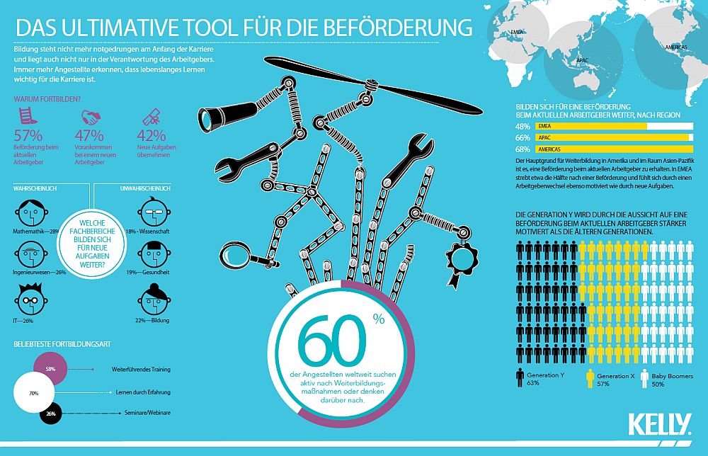 Die Ergebnisse machen deutlich, dass Weiterbildung ein gut geeignetes Mittel ist, nicht nur die Qualifikation – und damit letzten Endes auch die Profitabilität – der Mitarbeiter zu steigern, sondern auch, um sie an das Unternehmen zu binden und die Loyalität zu stärken. Denn die Mitarbeiter möchten ihre neuen Fähigkeiten vor allem in ‚ihrem‘ Unternehmen nutzen. Und das eben nicht nur, um mehr Geld zu verdienen, sondern auch, um neue Aufgaben übernehmen zu können. Ralf Mathiesen, Geschäftsführer von Kelly Services