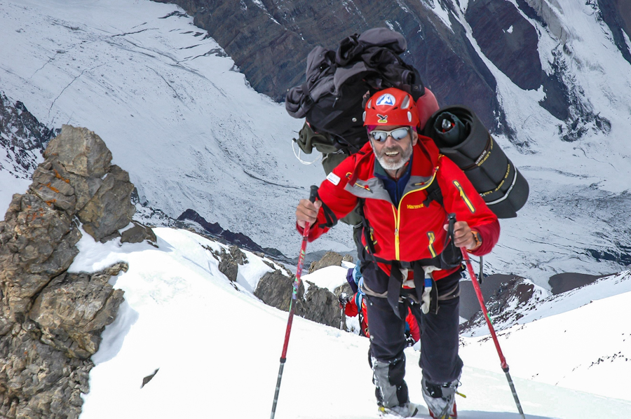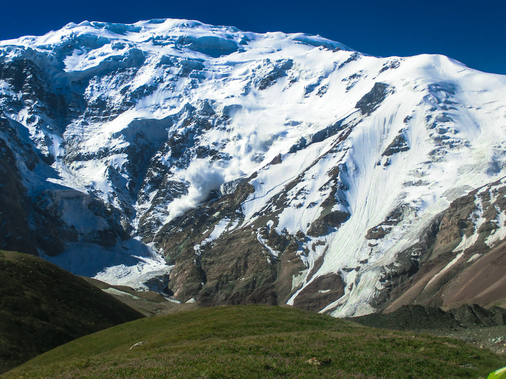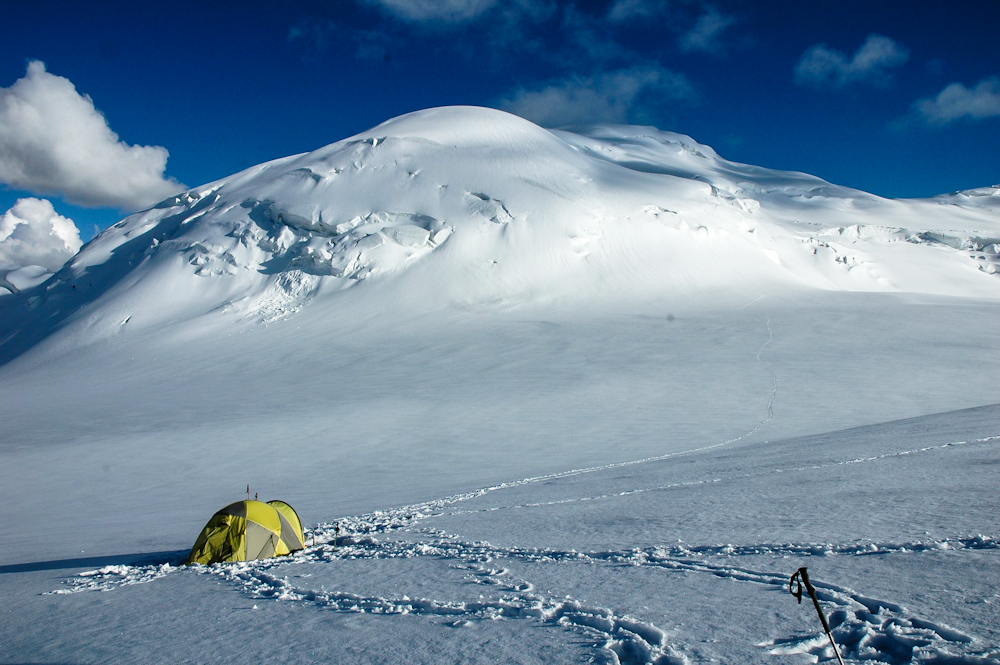 Neben zahlreichen anderen Behinderungen, die eher mit den lokalen Gegebenheiten des Landes und der Mentalität zu tun hatten, war das größte Problem das Wetter. Ungewöhnlich viel Schnee und sehr hohe Temperaturen machten das letzte Stück Weg zum Gipfel im August 2012 einfach unmöglich zu besteigen. Neben der Gefahr von Lawinen war der Tiefschnee derart viel und weich an der Oberfläche, dass mehrere Anläufe zum Gipfel abgebrochen werden mussten. Auf dem Bild oben kann man die Stelle, bei der das Team umkehren musste sehr gut erkennen.