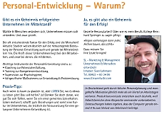 Märkte & Menschen verändern sich, Unternehmen müssen sich verändern und zwar gezielt. Der oft entscheidende Faktor für den Erfolg sind die Menschen! Aktuelle Studien weisen deutlich auf die herausragende Bedeutung der Personal-Entwicklung auch und gerade bei Mittelständlern hin. Die Kraft dieser Unternehmen liegt bei den Mitarbeitern und zwar bei denen die mitdenken.