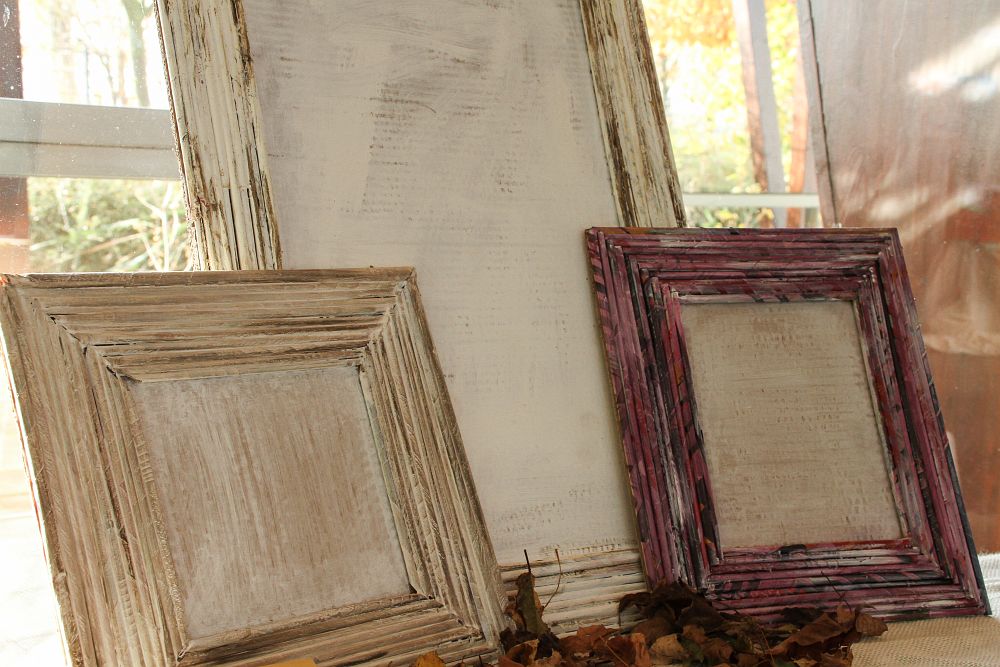 Kunstausstellung zum Tag der offenen Tür der AWO Werstatt in Eilenburg: Bilderrahmen nur aus Papier vom BBB gefertig