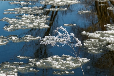 Das Fließen von Eisschollen auf Mulde oder Mühlgraben