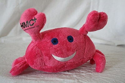 Doch auf diesen Brief habe ich sozusagen schon gewartet. Ein Firmen-Maskottchen, das bereits weit gereist ist und auch schon erfolgreich zum Einsatz kam. Medi-Crab ist der Name dieser frechen Krabbe. Zu Hause ist die Medi-Crab in der Heppe Medical Chitosan GmbH. Einem jungen Unternehmen, das sich u. a. auf die Entwicklung eines speziellen Produktes, dem Chitosan spezialisiert hat.